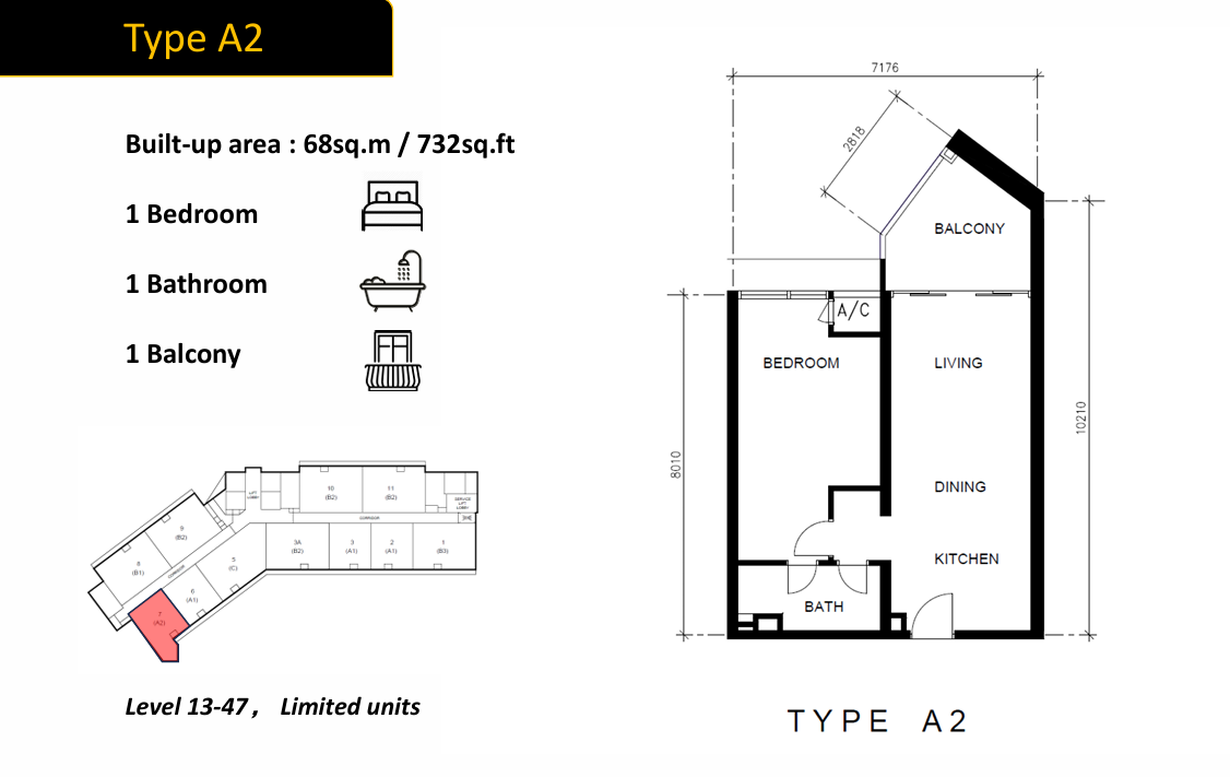 | TYPE A2 | 732 SQFT | RM 2166 PER SQFT | RM 1,586,000 | 1 | 1 | ||