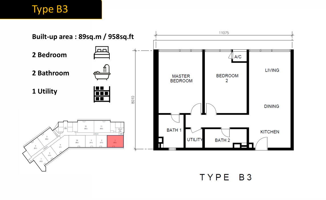 | TYPE B3 | 958 SQFT | RM 2156 PER SQFT | |