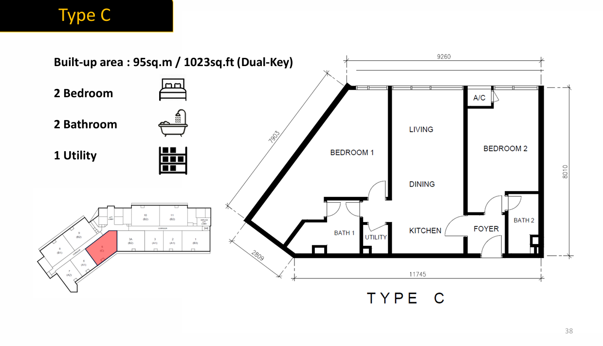 | TYPE C | 1023 SQFT | RM 2130 PER SQFT | RM 2,179,000 | 2 | 2 |