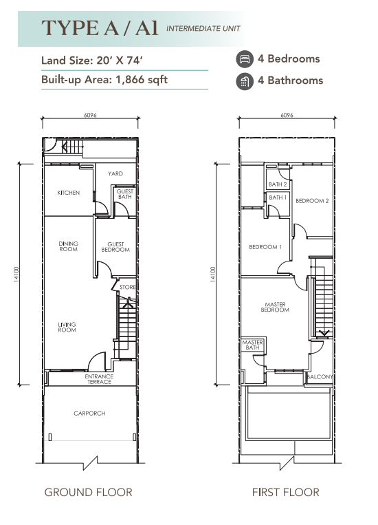 | Type A/A1 | 1866 SQFT | RM 515 PER SQFT | RM 962,000 | 4 | 4 | ||