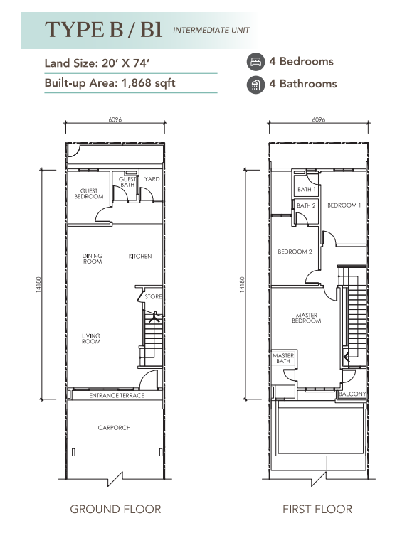 | Type B/B1 | 1868 SQFT | RM 518 PER SQFT | RM 968,000 | 4 | 4 | ||