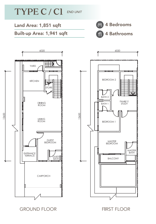| Type C/C1 | 1941 SQFT | RM 538 PER SQFT | RM 1,046,000 | 4 | 4 | ||