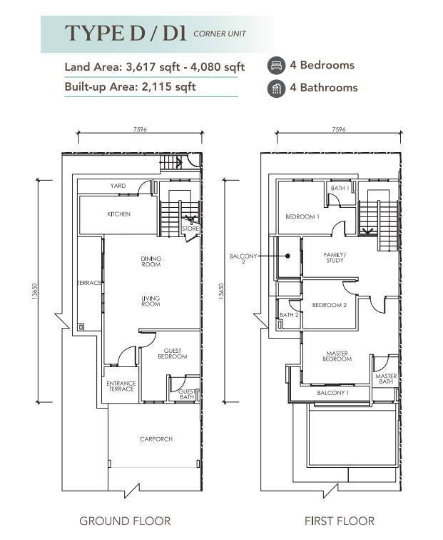 | Type D/D1 | 2115 SQFT | RM 664 PER SQFT | RM 1,406,000 | 4 | 4 |